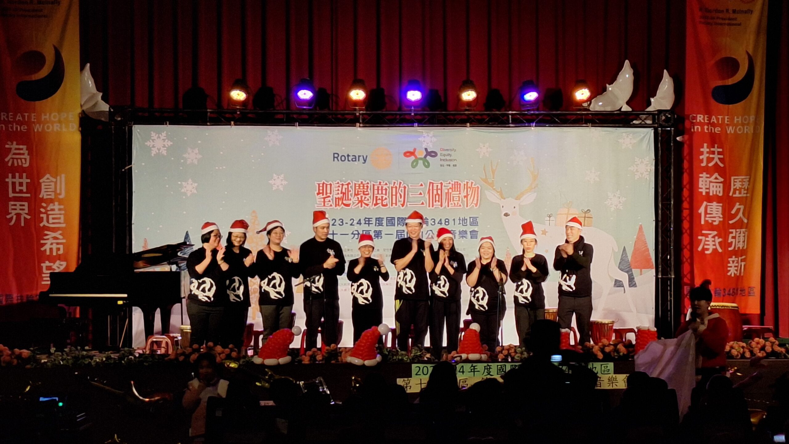 由肯愛協會,蘇禾秘書長帶隊的肯愛忘憂鼓手團,此次受邀至台北市立特殊教育學校演出,參與國際扶輪社3481地區,第11分區第1屆DEI公益音樂會,音樂會的主題為「聖誕麋鹿的三個禮物」,分別象徵: 「多元、平等、包容」三大元素。