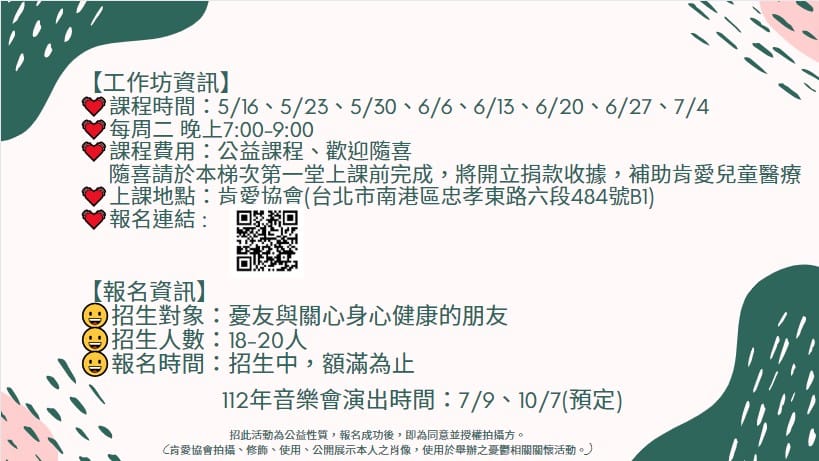 💓報名連結 : https://www.surveycake.com/s/WlqYD