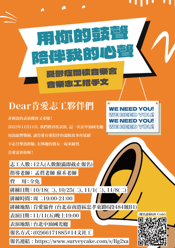 [?‍♂️志工招募?] -2022憂鬱症關懷音樂會 音樂表演志工✨