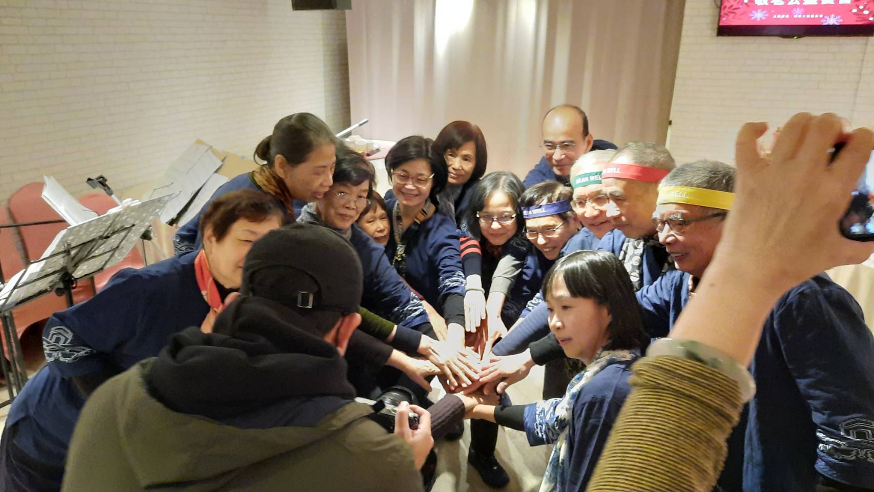 練習了八個月,這天終於到來,不老鼓手們要在舞台上,大顯身手了,看的出來對於今天的演出老友們都非常重視,還沒到預定時間,已經一群人到場準備練習,總彩時,老友們也把握最後機會,反覆練習,為了就是在等等五分鐘的表演,能夠完美演出。
